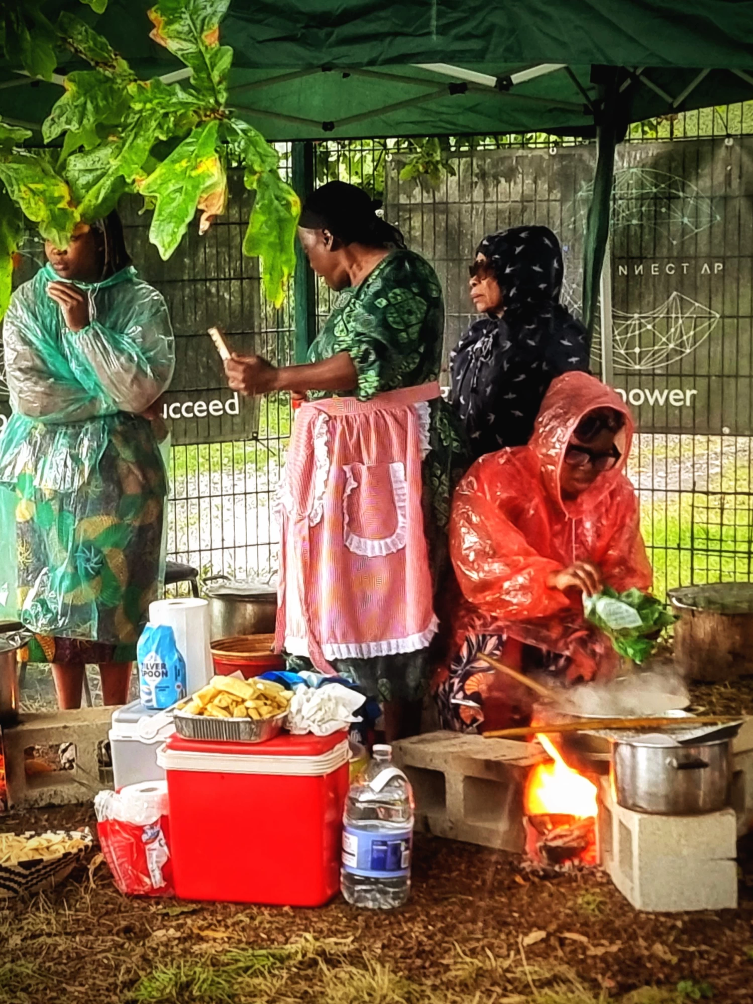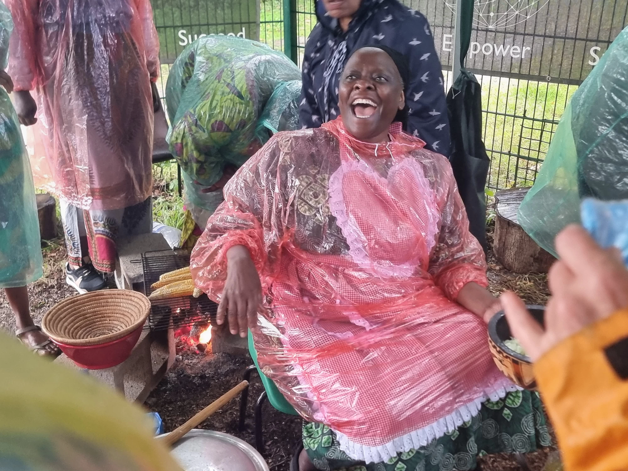We chatted, cooked over open fires and roasted chicken in rain ponchos (we were still in Oldham) while the stereo blasted out tunes from across the globe. Highlife and Afrobeats mixed with Euro-pop and American chart hits. At one point I realised I still remembered the dance to the Macarena! The sun came out and treated us to a delightful rainbow. Families from neighbouring homes popped down to share a plate. I was given jobs - taught, corrected and re-taught how to prepare greens that were a staple from Zimbabwe - these hadn’t travelled that far and had been grown in this unassuming corner of industrial Oldham. This green, vibrant, fertile kitchen garden, with corn taller than all 5'11" of me, was surrounded by warehouses and suburban rows of houses - an unlikely oasis, but thriving all the same.