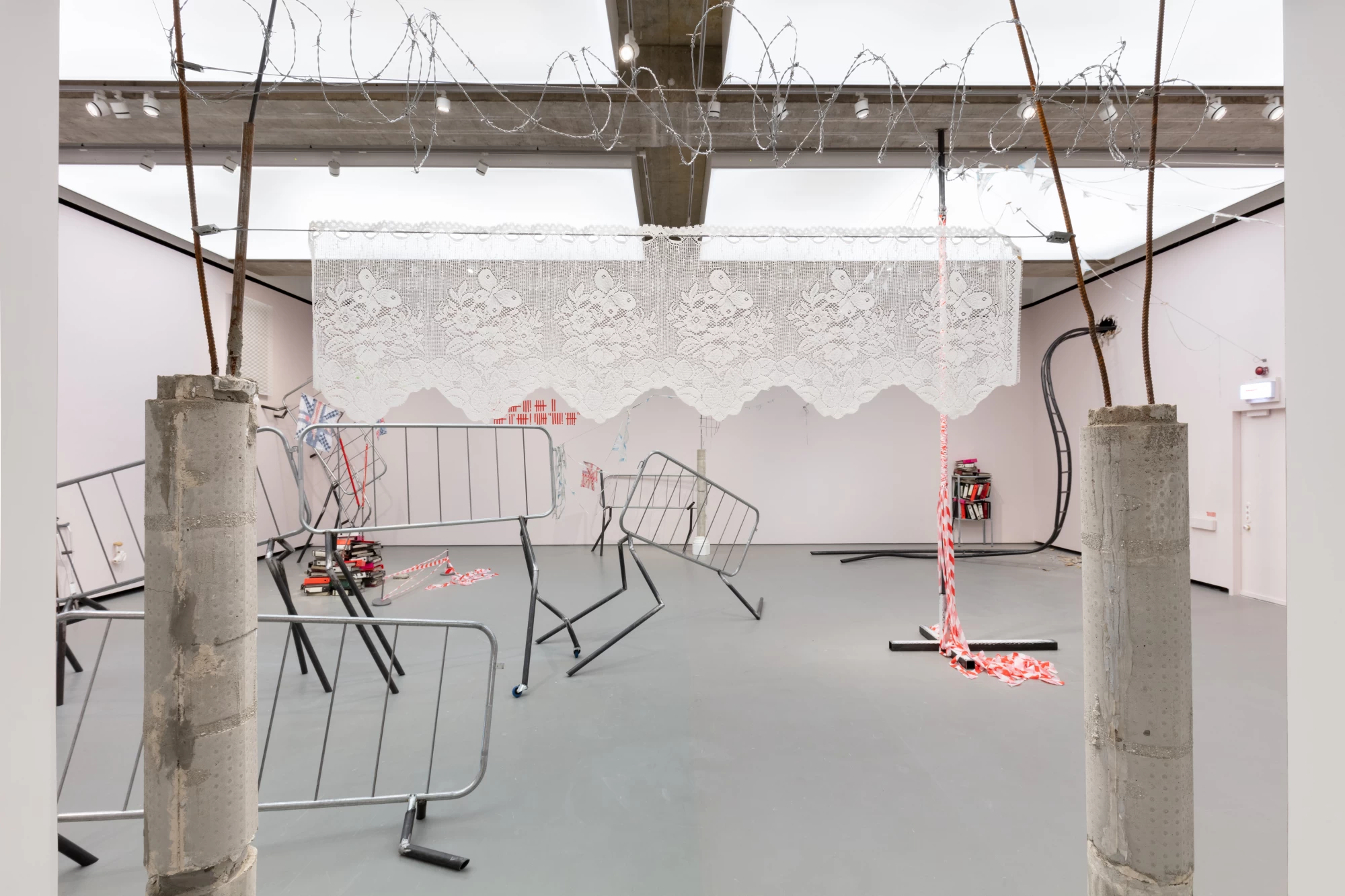 Jesse Darling works in sculpture, installation, video, drawing, sound, text and performance, using a ‘materialist poetics’ to explore and reimagine the everyday technologies that represent how we live. Darling has often combined industrial materials such as sheet metal and welded steel with everyday objects to explore ideas of the domestic and the institutional, home and state, stability and instability, function and dysfunction, growth and collapse.