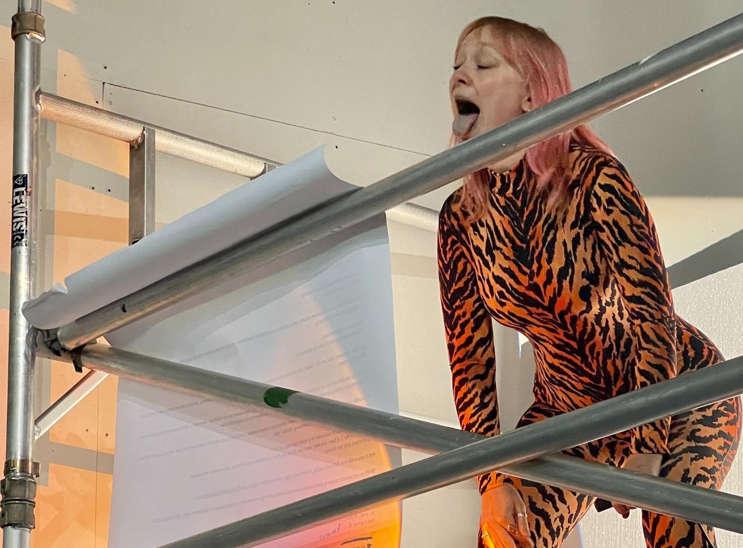 Tiger Helix (Oblivion) is a 3-day micro residency at Towner as part of an ongoing project by artist Sophie Chapman. In expansive installation and playful performance it explores wild and queer ways to change and get free in the face of polycrisis*