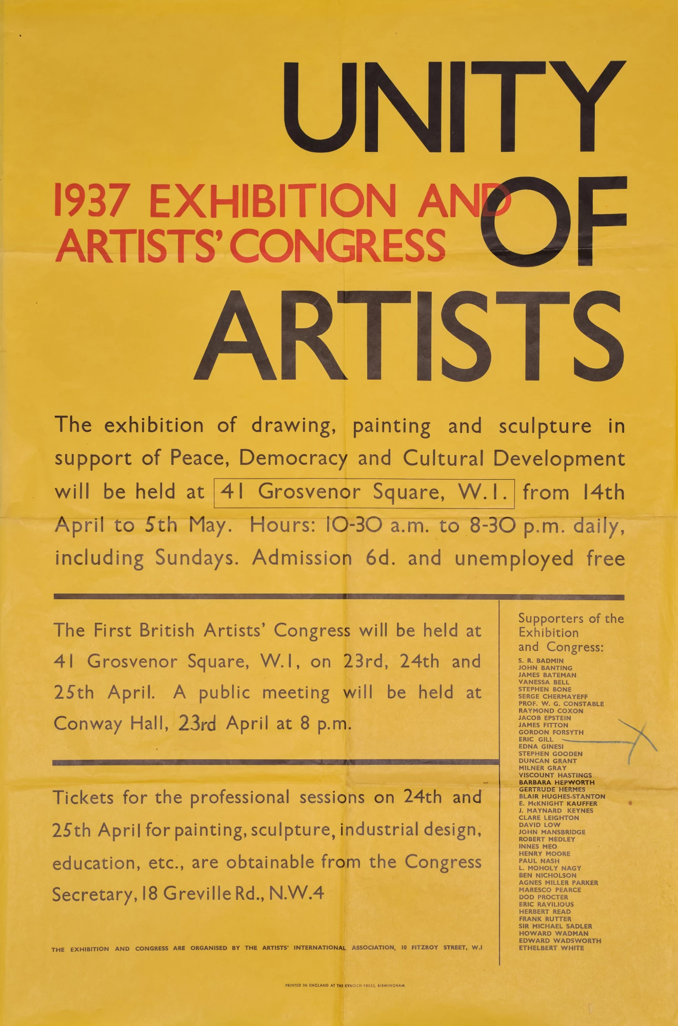This exhibition will highlight the life and work of 11 members of the founding generation of the Artists International Association (AIA): Peggy Angus, Pearl Binder, James Boswell, James Fitton, Margaret Fitton, James Holland, Percy Horton, Peter Laszlo Peri, Betty Rea, Cliff Rowe and Nan Youngman. Their work will be shown alongside works by prominent AIA exhibiting artists, including Ithell Colquhoun, Dame Laura Knight, Paul Nash and Lucien Pissaro, who supported the organisation and its campaigns for peaceful and cultural development and international understanding.